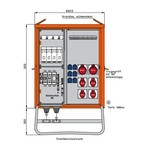 | Kurzbeschreibung | Verteilerschrank 138kVA mit 3 RCDs Typ B und RCD Typ A, 10 LS, 6 CEE-Abgänge 16-63A und 6 Schukos |
