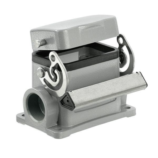 | Kurzbeschreibung | Gehäuse Industriesteckverbinder, Sockelgehäuse, Längsbügel am Unterteil, Baugröße: 3, IP65, im gestecktem Zustand |