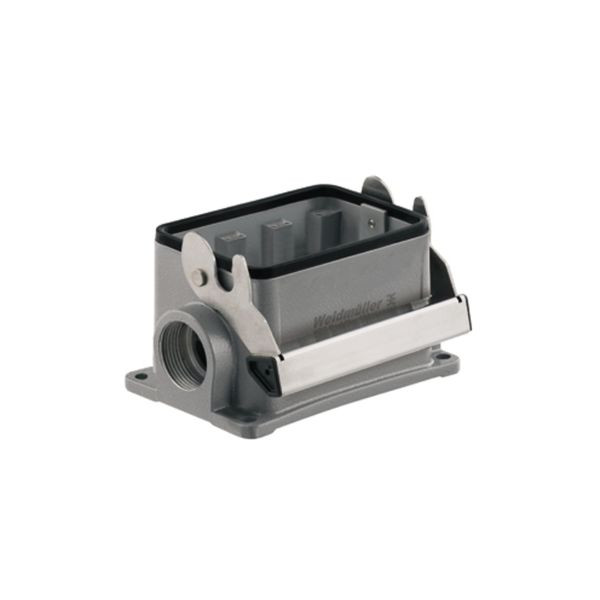 | Kurzbeschreibung | Gehäuse Industriesteckverbinder, Sockelgehäuse, Längsbügel am Unterteil, Baugröße: 9, IP65, im gestecktem Zustand |