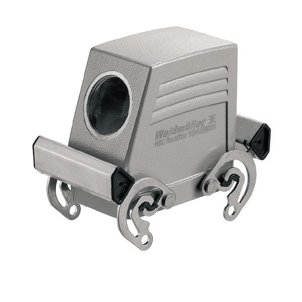 | Kurzbeschreibung | Gehäuse Industriesteckverbinder, Kabeleingang seitlich, Steckergehäuse, Querbügel am Oberteil, Baugröße: 4, IP65, im gestecktem Zustand |