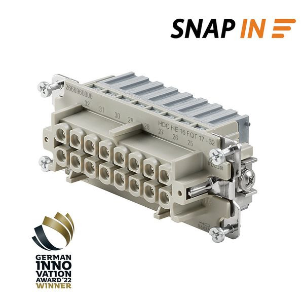 | Kurzbeschreibung | Kontakteinsatz (Industriesteckverbinder), Buchse, 500 V, 16 A, Polzahl: 16, SNAP IN, Baugröße: 6 |