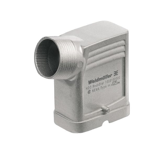 | Kurzbeschreibung | Gehäuse Industriesteckverbinder, Kabeleingang seitlich, Steckergehäuse, Querbügel am Unterteil, Baugröße: HQ, IP65, im gestecktem Zustand |