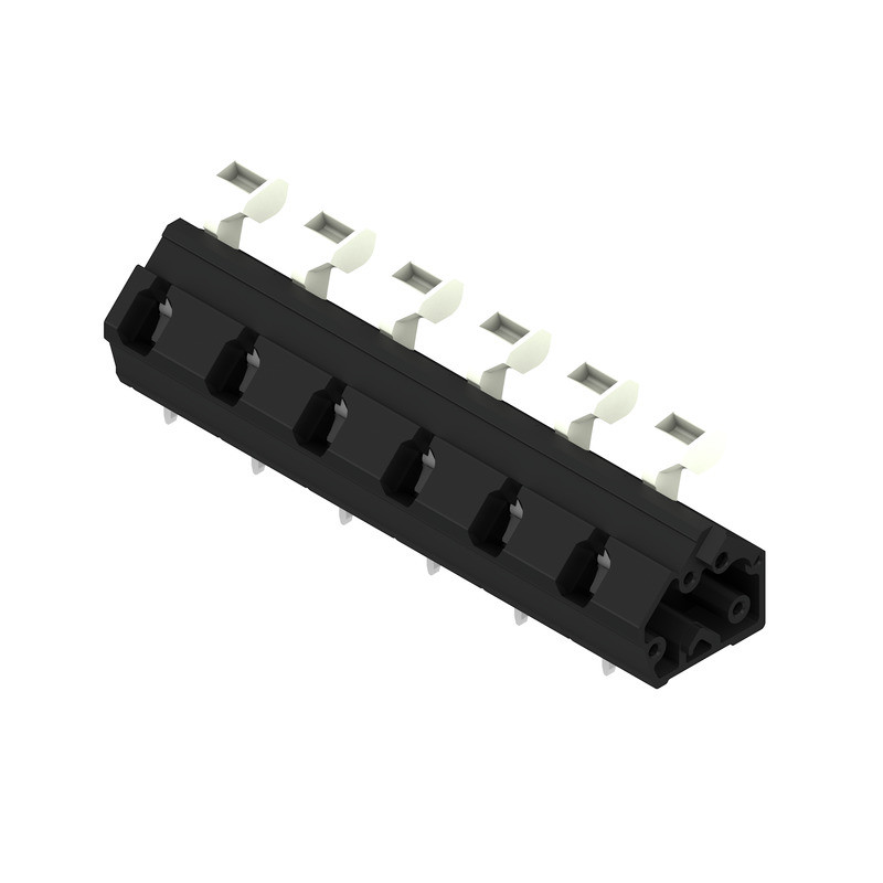 | Kurzbeschreibung | Leiterplattenklemme, 1000 V, 24 A, Raster in mm: 10.00, 2.5 mm², Polzahl: 6, Zugfederanschluss mit Betätigungselement, THT-Lötanschluss, 135°, Box |