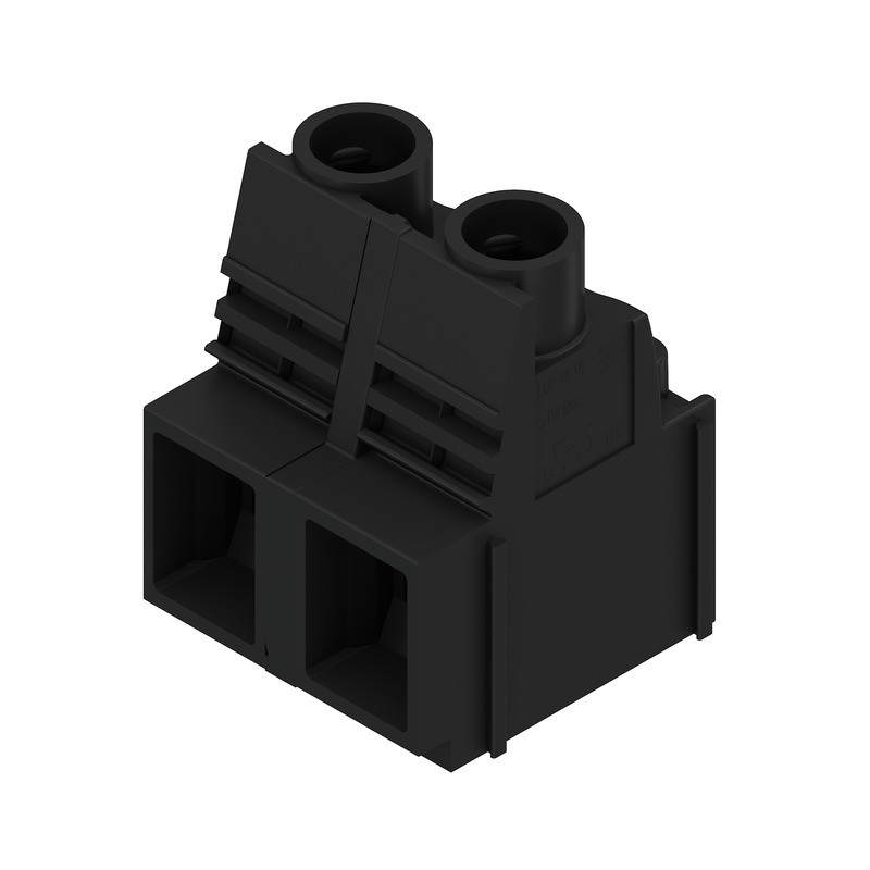 | Kurzbeschreibung | Leiterplattenklemme, 1000 V, 76 A, Raster in mm: 12.70, 16 mm², Polzahl: 2, Zugbügelanschluss, THT-Lötanschluss, 90°, Box |