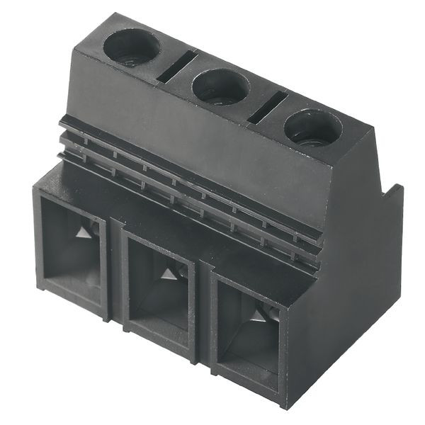 | Kurzbeschreibung | Leiterplattenklemme, 1000 V, 101 A, Raster in mm: 15.00, 25 mm², Polzahl: 3, Zugbügelanschluss, THT-Lötanschluss, 90°, Box |