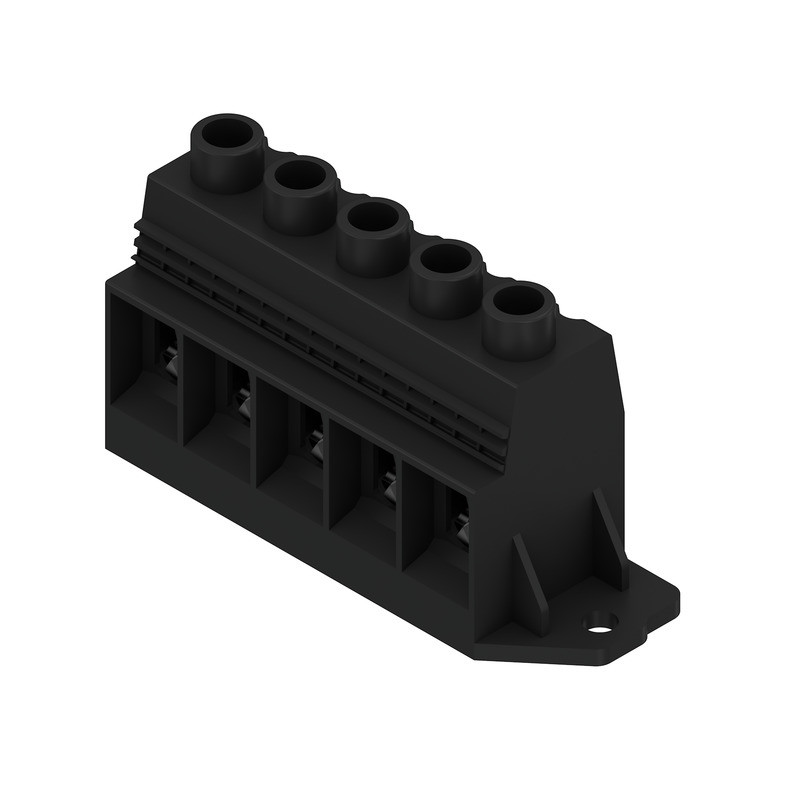 | Kurzbeschreibung | Leiterplattenklemme, 1000 V, 150 A, Raster in mm: 15.00, 50 mm², Polzahl: 5, Zugbügelanschluss, THT-Lötanschluss, 90°, Box |