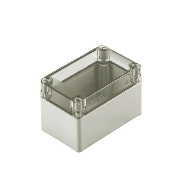 | Kurzbeschreibung | Kunststoffgehäuse, MPC (Polycarbonat-Leergehäuse), 125 x 75 x 75 mm, PC, unbehandelt, lichtgrau, transparent |
