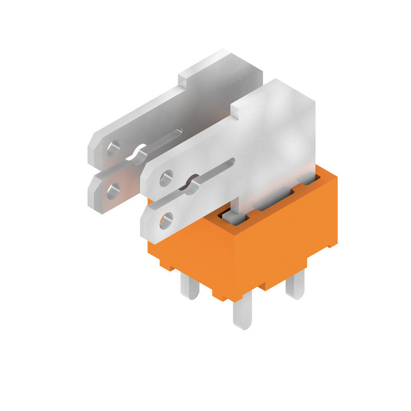 | Kurzbeschreibung | Leiterplattenklemme, 320 V, 24 A, Raster in mm: 5.00, Polzahl: 2, Flachsteckanschluss, THT-Lötanschluss, 90°, Box |