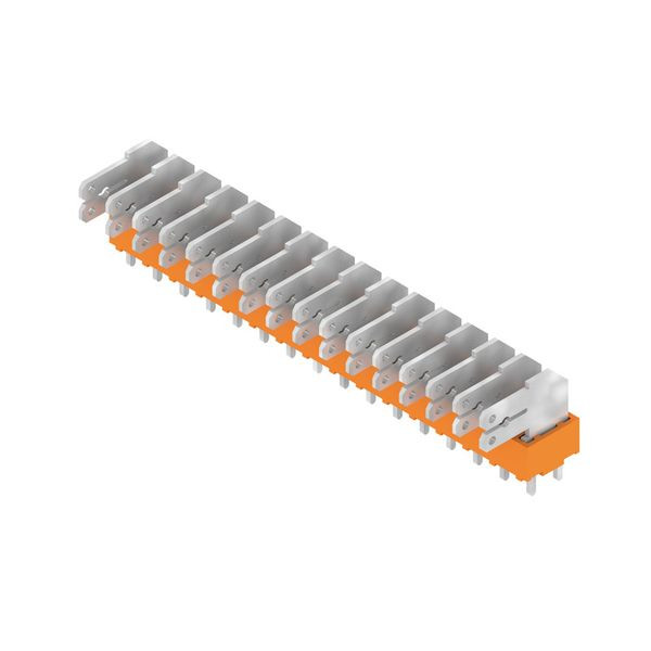 | Kurzbeschreibung | Leiterplattenklemme, 320 V, 24 A, Raster in mm: 5.00, Polzahl: 16, Flachsteckanschluss, THT-Lötanschluss, 90°, Box |