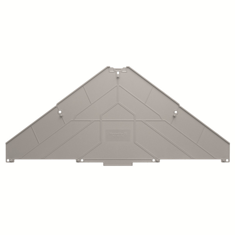Trennwand für die elektrische Trennung von Reihenklemmen bei benachbarten Querverbindungen. Die Trennwand wird auch zur optisch erkennbaren Trennung von Stromkreisen eingesetzt, um Verdrahtungsfehler zu vermeiden.