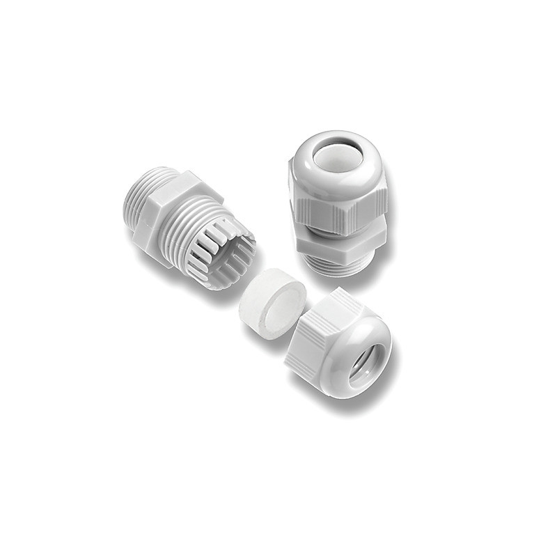 Kabelverschraubung aus Kunststoff zum Abdichten Gehäusen bei der Einführung von Leitungen. Mit Zugentlastung.