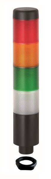 Fertig konfigurierte Signalsäule mit 4 optischen Stufen und Summer (klar/grün/gelb/rot) LED-Dauerlicht Mit M12-Stecker Auch in ansprechendem Metallic-Design und klarer Kalotte erhältlich