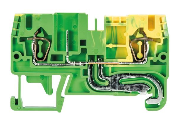 Schutzleiterklemme mit Federkraftanschluss für die Montage auf TS 35, Nennquerschnitt: 2.5 mm², Baubreite: 5 mm, Farbe: grün-gelb