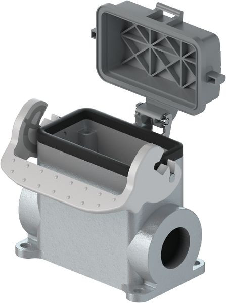Gehäuseunterteil revos basic aus Aluminium, mit Einhandverriegelung mitSchutzdeckel und Gewindebohrung M32 links, niedrige Bauform, 10-polig