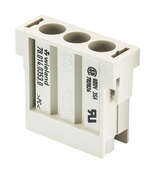 Modulares Steckverbindersystem, 3-poliges Steckermodul, 630V/40A, Crimpanschluss, gedrehte Kontakte