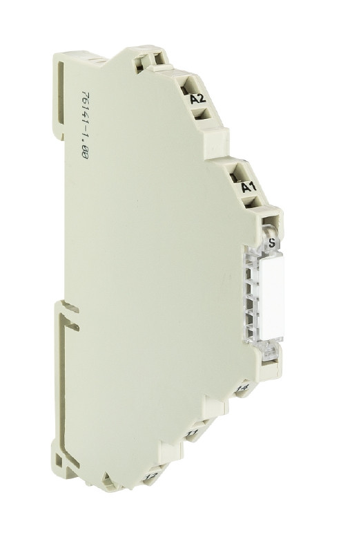 flare, mechanisches Messertrennklemmenrelais, 6,2 mm Baubreite, 1 Wechsler, Anschluß mit Federzugklemme, Eingang: 24 V AC/DC, Ausgang: 250 V AC/6 A, Spannung/Strom min.: 24 V/8 mA, mit Minussteckerbrücke auf der Steuerseite, Type: FLARE-24V-1W-250V6A-CUT