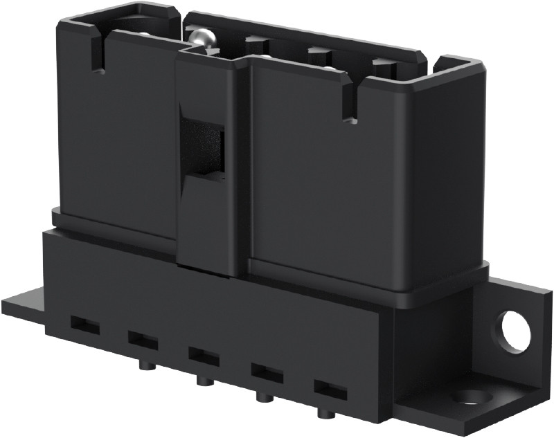 gesis® MINI Geräteanschluss, Lötteil, vertikal mit Befestigungsflansch, im 5-poligen Gehäuse, Polzahl 4, Ausführung Stecker, Anschlussart Lötanschluss, Bemessungsspannung 250 V / 400 V, Bemessungsstrom 16 A, Codierfarbe / Kontakteinsatz schwarz