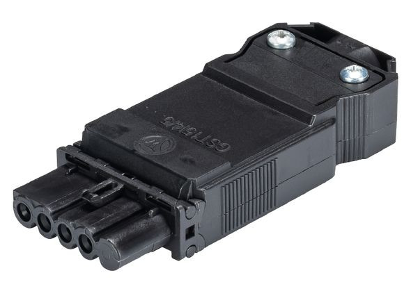 gesis® MINI Steckverbinder, gerade, im 5-poligen Gehäuse, Polzahl 4, Buchse, Anschlussart Schraubanschluss, Bemessungsspannung 250 V / 400 V, Bemessungsstrom 16 A, Kabeldurchmesser 8,5 - 12,5 mm, Codierfarbe / Kontakteinsatz schwarz