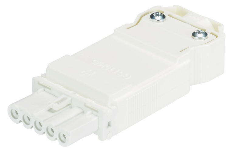 gesis® MINI Steckverbinder, gerade, Polzahl 5, Buchse, Anschlussart Schraubanschluss, Bemessungsspannung 250 V / 400 V, Bemessungsstrom 16 A, Kabeldurchmesser 8,5 - 12,5 mm, Codierfarbe / Kontakteinsatz weiß