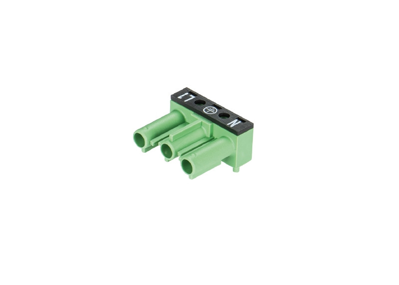 Steckerteil, 3-polig, in Lötausführung (Lötanschluß abgewinlelt), mit Montage-Zapfen, Farbe: grün, Type: ST 18/3S C1 F GN