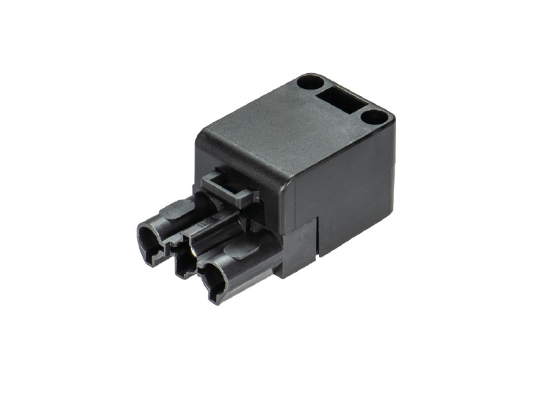 Buchsenteile, 3-polig, komplett montiert, mit Zug- entlastung und Verriegelung, Farbe: schwarz, Type: ST 18/3B1 ZEVN SW FLM