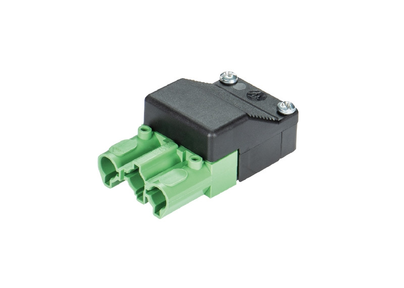 Buchsenteile, 3-polig, komplett montiert, mit Zugentlastung, ohne Verriegelung, Farbe: Buch- senteil grün / Zugentlastung schwarz, Type: ST 18/3 B1C1 ZE GN RDM