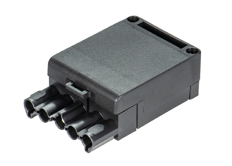 Buchsenteile, 5-polig, doppelte Klemmung, komplett, montiert, mit Zugentlastung und Verriegelung, Farbe: schwarz, Type: ST 18/5B ZEV SW RDM
