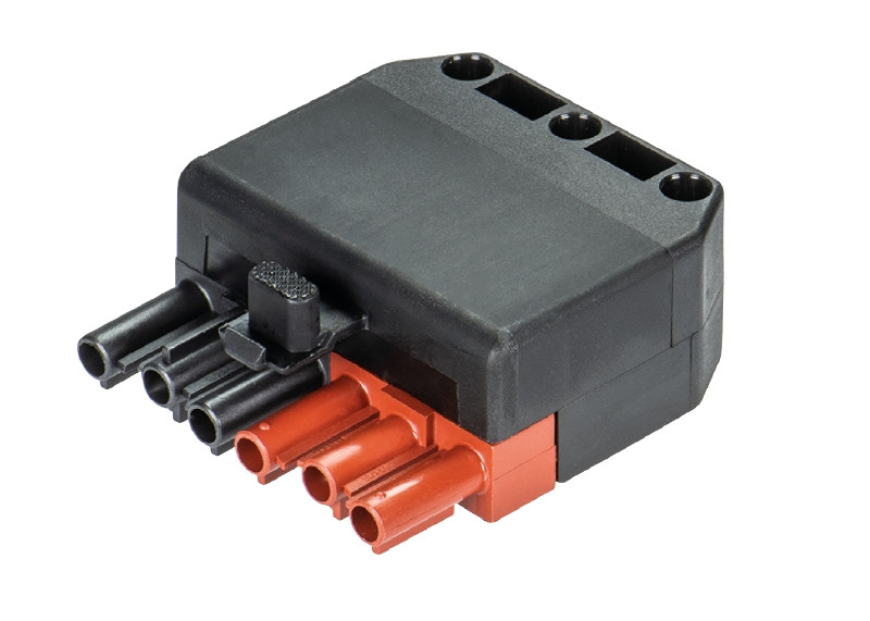 Steckerteile, 6-polig, komplett montiert, mit Zug- entlastung und Verriegelung, Farbe: schwarz/braun, Type: ST 18/6S ZEVN SWBR M