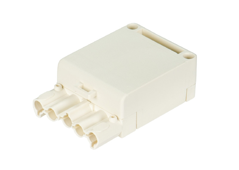 Buchsenteile aus glühdrahtbeständigem Material nach IEC 60335-1, Farbe hellelfenbein, in Schraubausführung, 5-polig, komplett unmontiert, mit Zugentlastung und Verriegelung, Type: ST18/5B1 ZEVNNN RD