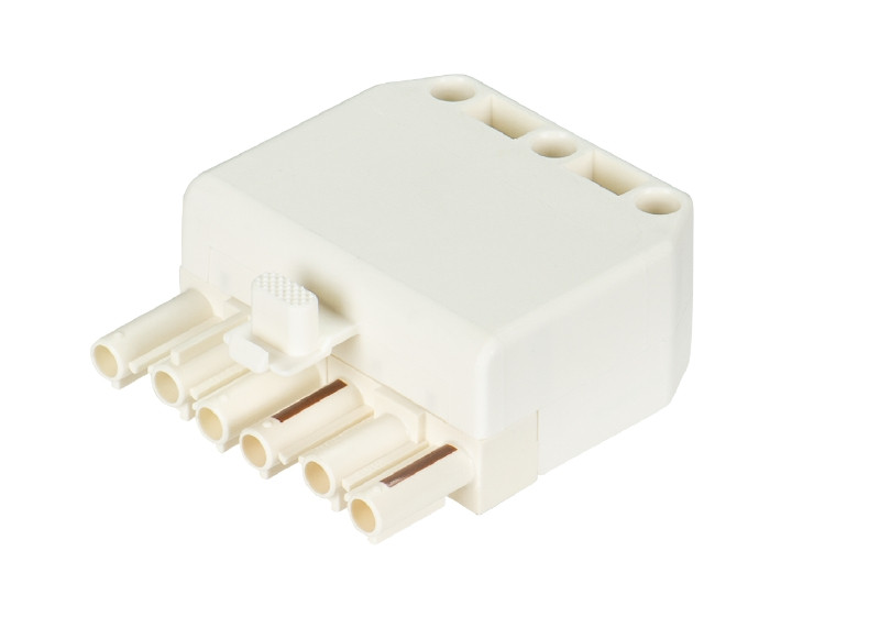 Steckerteil, 6-polig, komplett unmontiert, mit Zugentlastung und Verriegelung, erhöhte Glühdrahtbeständigkeit, Farbe: hellelfenbein; Codierung: schwarz/ braun, Type: ST18/6S ZEVNN