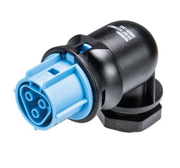 RST® CLASSIC Geräteanschluss, Modular, gewinkelt 90°, M20, Polzahl 3, Ausführung Buchse, Anschlussart Schraubanschluss, Bemessungsspannung 250 V / 400 V, Bemessungsstrom 20 A, Codierfarbe / Kontakteinsatz lichtblau