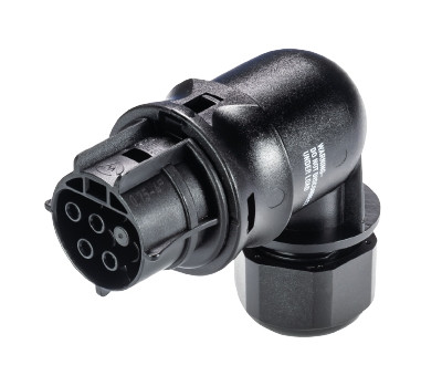 RST® CLASSIC Steckverbinder, gewinkelt 90°, Polzahl 4, Buchse, Anschlussart Schraubanschluss, Bemessungsspannung 250 V / 400 V, Bemessungsstrom 20 A, Kabeldurchmesser 6 - 10 mm, Codierfarbe / Kontakteinsatz schwarz