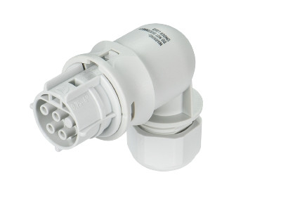 RST20i4 Steckverbinder, gewinkelt 90°, Polzahl 4, Buchse, Anschlussart Schraubanschluss, Bemessungsspannung 250 V / 400 V, Bemessungsstrom 20 A, Kabeldurchmesser 10 - 14 mm, Codierfarbe / Kontakteinsatz lichtgrau