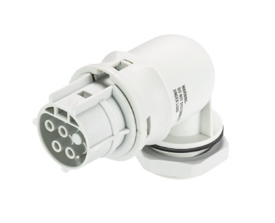 RST20i4 Geräteanschluss, Modular, gewinkelt 90°, M25, Polzahl 4, Ausführung Buchse, Anschlussart Schraubanschluss, Bemessungsspannung 250 V / 400 V, Bemessungsstrom 20 A, Codierfarbe / Kontakteinsatz lichtgrau