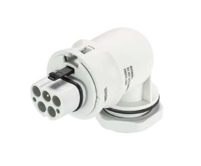 RST20i4 Geräteanschluss, Modular, gewinkelt 90°, M25, Polzahl 4, Ausführung Stecker, Anschlussart Schraubanschluss, Bemessungsspannung 250 V / 400 V, Bemessungsstrom 20 A, Codierfarbe / Kontakteinsatz lichtgrau
