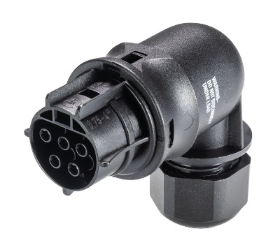 RST® CLASSIC Steckverbinder, gewinkelt 90°, Polzahl 5, Buchse, Anschlussart Schraubanschluss, Bemessungsspannung 250 V / 400 V, Bemessungsstrom 20 A, Kabeldurchmesser 6 - 10 mm, Codierfarbe / Kontakteinsatz schwarz