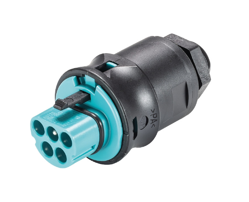 RST20i5 Geräteanschluss, Modular, gerade, M16, Polzahl 5, Ausführung Stecker, Anschlussart Crimp, Bemessungsspannung 250 V, Bemessungsstrom 20 A, Codierfarbe / Kontakteinsatz türkisblau