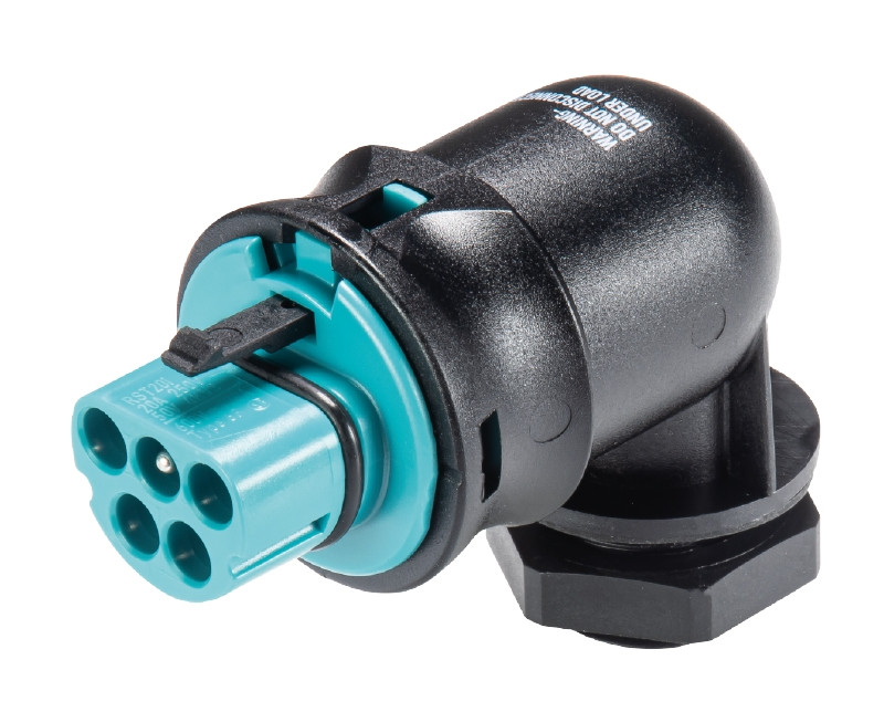 RST20i5 Geräteanschluss, Modular, gewinkelt 90°, M20, Polzahl 5, Ausführung Stecker, Anschlussart Crimp, Bemessungsspannung 250 V, Bemessungsstrom 20 A, Codierfarbe / Kontakteinsatz türkisblau