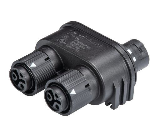 RST® MINI Verteiler, Parallelschaltung, mit Befestigungsmöglichkeit an 06.562.5853.0 / 06.562.5853.1, Polzahl 3, Bemessungsspannung 250 V, Bemessungsstrom 16 A, Anzahl der Eingänge 1, Anzahl der Ausgänge 2, Codierfarbe / Kontakteinsatz schwarz