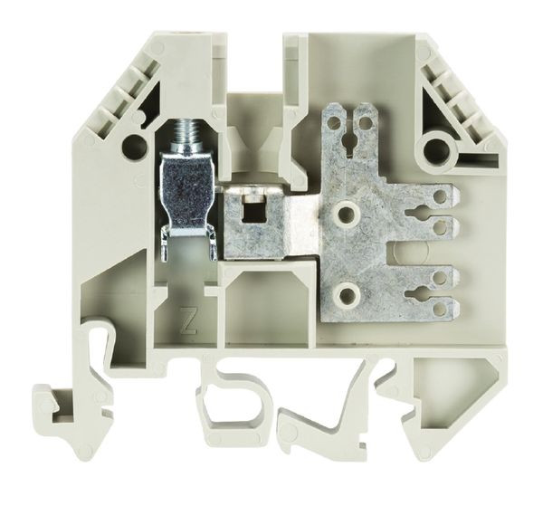 Vertreilerklemme mit Flachsteckanschluss und Schraubanschluss für Montage auf TS 35 und TS 32, Nennquerschnitt 4 mm², Baubreite 6 mm , Farbe grau