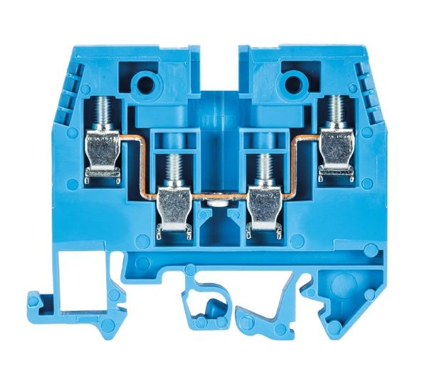 Duo-Durchgangsklemme mit Schraubanschluss für Montage auf TS 35 und TS 32, Nennquerschnitt 4 mm², Baubreite 6 mm, Farbe blau