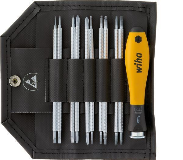 | Kurzbeschreibung | Wiha Schraubendreher mit Wechselklingen Set SYSTEM 4 ESD gemischt 12-tlg. inkl. Rolltasche (31499) |