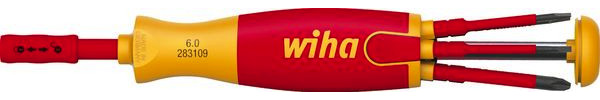 Kurzbeschreibung Wiha Schraubendreher mit Bit Magazin LiftUp electric Schlitz, Phillips, PlusMinus/Pozidriv mit 6 slimBits (38611)
