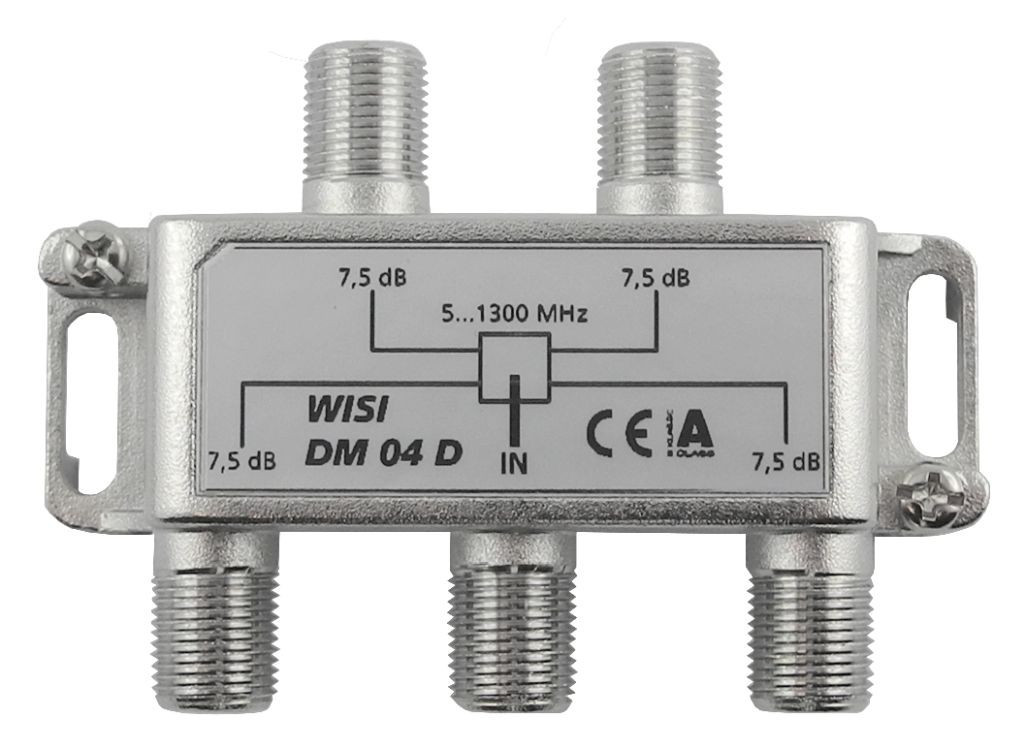 Der DM04 D ist ein 4-fach Verteiler fuer die symmetrische Aufteilung von Kabelsignalen. Mit einem Frequenzbereich bis 1,3 GHz ist der Verteiler bestens fuer DOCSIS 3.1 Anwendungen geeignet. Das weißbronze-beschichtete Gehaeuse ermoeglicht sehr hohe Schirmungseigenschaften der Klasse A (+10 dB) und gewaehrleistet eine stoerungsfreie Uebertragung der Signale im Empfangs und Verteilsystem. Aufgrund der stetig steigenden multimedialen Inhalte ist eine hohe Intermodulationsfestigkeit sehr wichtig, der Verteiler DM04 D erfuellt hierfuer die Anforderungen gemaeß EN 60728-4.