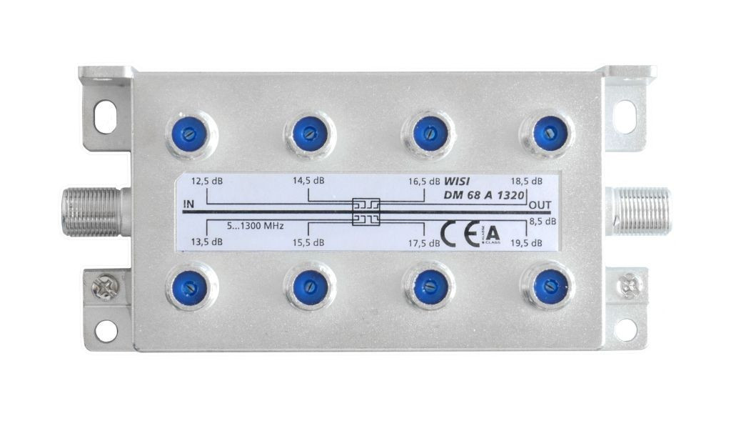 Der DM68A 1320 ist ein asymmetrischer 8-fach Abzweiger mit einer Abzweigdaempfung von 13 dB bis zu 20 dB fuer die Anwendung in Verteilsystemen mit einer Stammleitung. Mit einem Frequenzbereich bis 1,3 GHz ist der Abzweiger bestens fuer DOCSIS 3.1 Anwendungen geeignet. Das weißbronze-beschichtete Gehaeuse ermoeglicht sehr hohe Schirmungseigenschaften der Klasse A (+10 dB) und gewaehrleistet eine stoerungsfreie Uebertragung der Signale im Empfangs und Verteilsystem. Aufgrund der stetig steigenden multimedialen Inhalte ist eine hohe Intermodulationsfestigkeit sehr wichtig, der Abzweiger DM68A 1320 erfuellt hierfuer die Anforderungen gemaeß EN 60728-4.