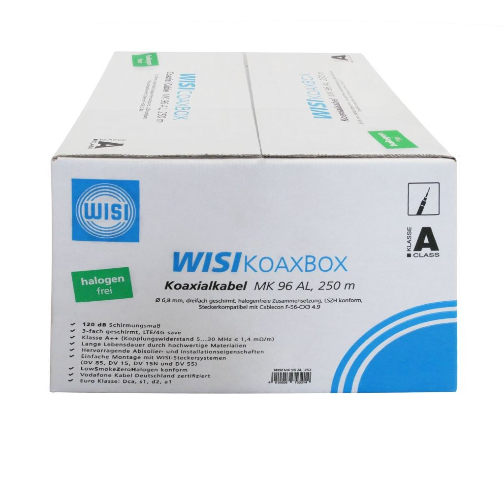 Laenge 250 m, 1,02/4,85/6,8 mm, 2200 MHz 29,7 dB, Schirmung >120 dB, auf Kunststofftrommel, Bonded Foil, Kupfergewicht/100m: 1,610 kg, Freigegeben fuer: Vodafone KDG. Das MK96 AL erfuellt die Euroklasse Dca, s1, d2, a1.