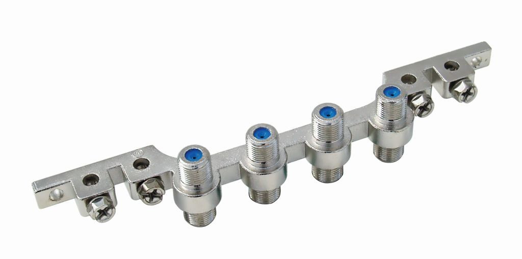 Erdungsblock mit hochwertigen F-Buchsen, zum HF-Dichten und -Erden von Koaxialleitungen und Anlagen nach VDE