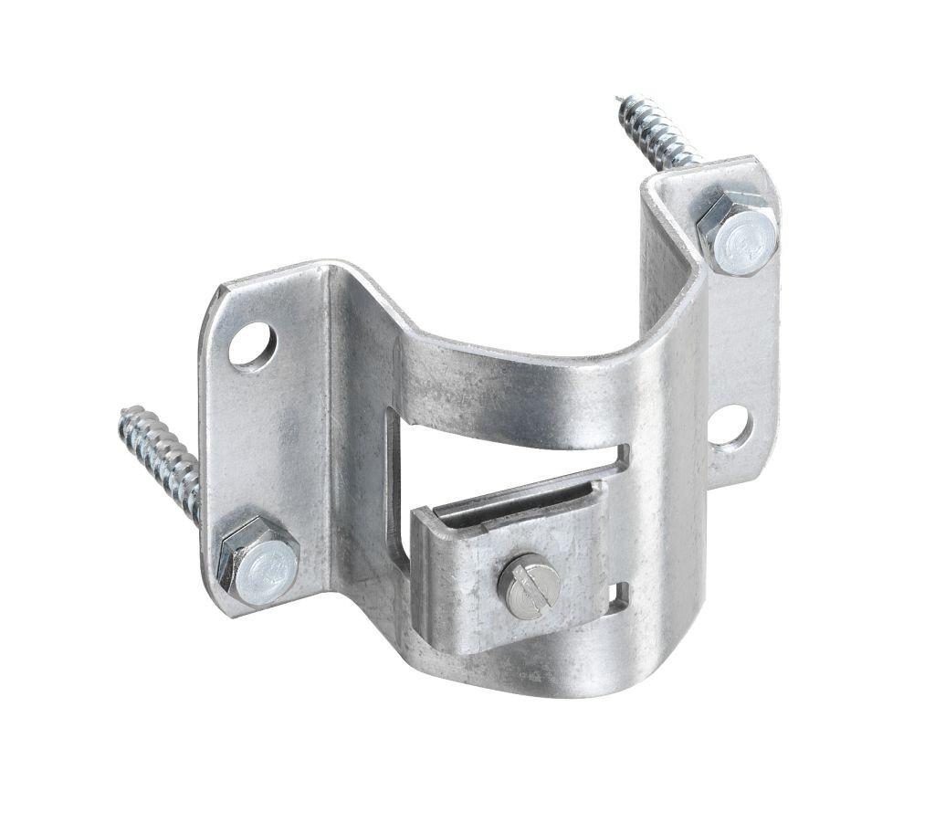 Mastschellen fuer Befestigung von Masten am Dachsparren, mit Anschluss fuer Erdungsleistung 5 - 10 mmØ, einschliesslich 2 Sechskant-Holzschrauben 8 x 50 mm.