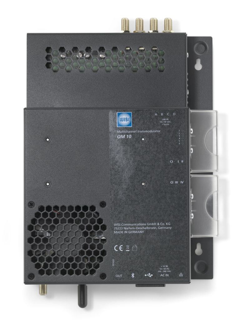 Transmodulator von 6 DVB-S/S2 Transpondern in 6 x DVB-T Kanäle, eingebaute 4 in 6 Verteilmatrix minimiert den Montageaufwand und DiSEqC 1.0 erhöht die Flexibilität zur Steuerung von bis zu 4 Satelliten, 4 CI Slots für die zentrale Entschlüsselung, PID Remapping ermöglicht am Ausgang eine statische PID – Vergabe. Bei Programmänderungen am Eingang entfällt somit ein neuer Suchlauf beim TV-Gerät bzw. Receiver (Q3 / 16), LCN / NIT Bearbeitung, Multiplex-Funktionalität am Eingang sowie am Ausgang, USB-Anschluss zur Einspeisung von Video-Content (Q3 / 16), Programmierung über Weboberfläche, integrierter DHCP-Server, automatische Verbindungsaufnahme mit dem PC, Smartphone - und Tablet-Programmierung über Bluetooth (Q3 / 16) Die Kompakt-Kopfstelle OM10 0646 dient zur Transmodulation von 6 DVB-S/S2 Transponder in 6 DVB-T Kanaele. Ausgestattet mit 4 CI Schnittstellen ist die Anlage optimal zur zentralen Entschluesselung von Pay-TV Programmen geeignet, kann aber auch als free-to-air Grundversorgung in kleineren Projekten verwendet werden. Mit der Multiplex-Funktionalitaet vor den CI-Schnittstellen, koennen Service aus verschiedenen Transpondern zusammengefuehrt und ueber eine Smartcard entschluesselt werden. Dies erhoeht die Wirtschaftlichkeit im Umgang mit hochpreisigen professionellen CAMs. Zusaetzlich besteht die Moeglichkeit ungewuenschte Programme aus einem Transponder zu entfernen und durch ausgangseitiges multiplexen die Anzahl der Ausgangskanaele zu verringern. Videoclips in Form eines TS-Files koennen ueber die USB-Schnittstelle eingespeist werden.
