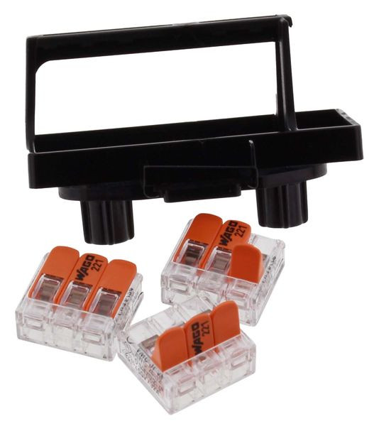 Klemmenträger für COMBI-Kästen inkl. COMBI Schnellmontageplatte montiert, 3x WAGO Klemme 221-413 lose beigelegt
